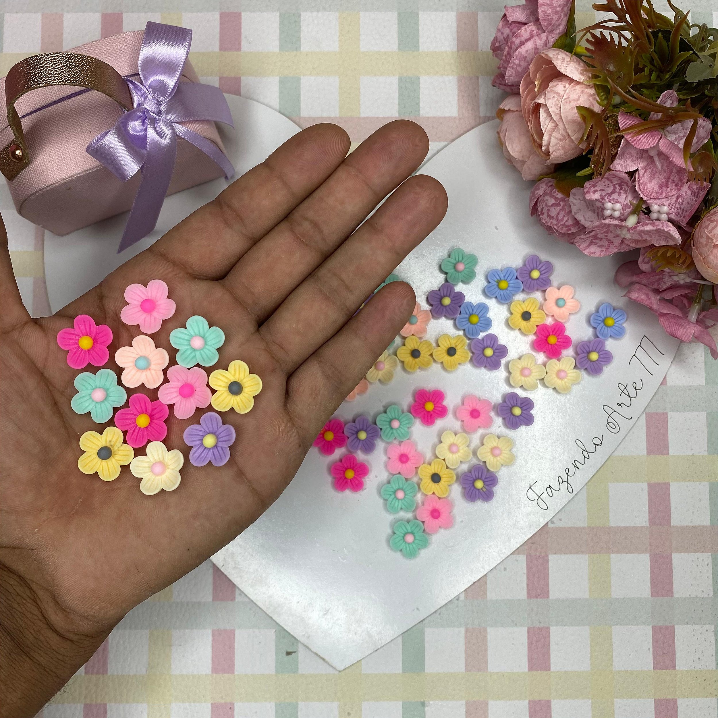 Aplique Florzinha de resina 15mm - 10 unidades
